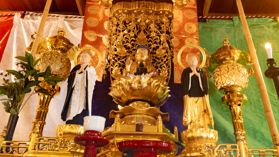 本尊は鎌倉時代の作である阿弥陀如来様です。脇に江戸時代の作である観音様、勢至菩薩様が控えます。