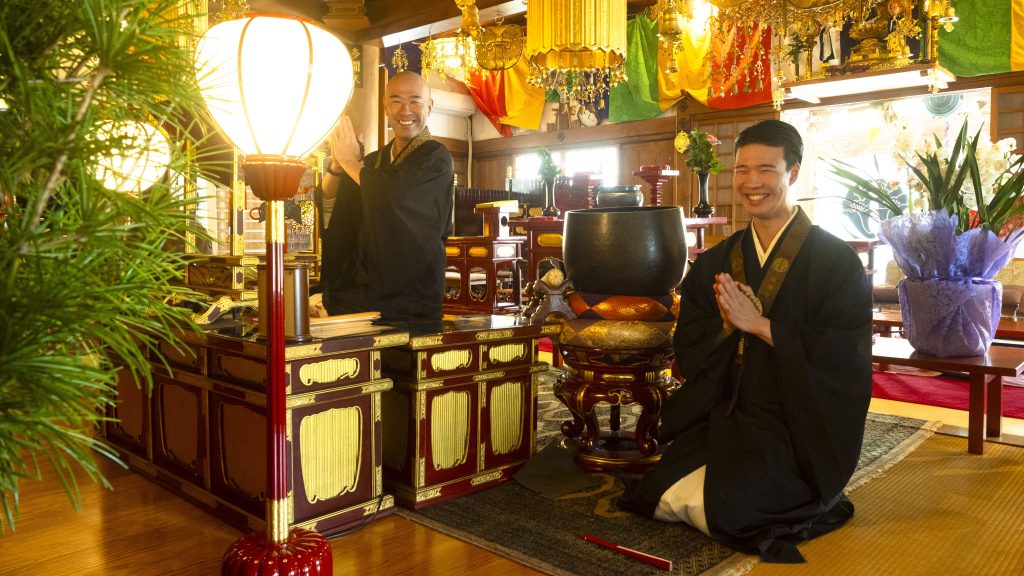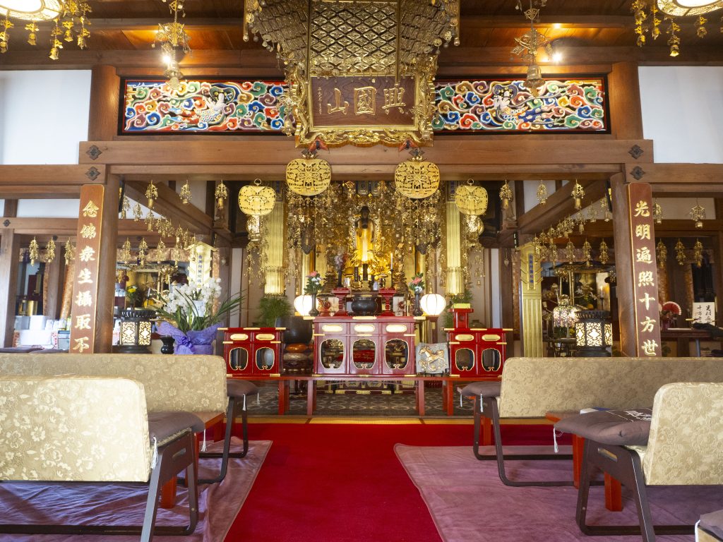 本堂写真•浄土宗改宗前の本堂は、神於山山麓付近にありましたが室町時代に災害により現在の位置に移転しました。その後、江戸時代の末期に落雷による火災により焼失しましたが、文政12年(1829年)に再建され現在に至っております。この火災により室町時代建立の本堂や古くからの記録類が失われましたがご本尊は無事に運び出されました。•なお令和2年(2020年)に本堂の瓦葺き替えを行っております。